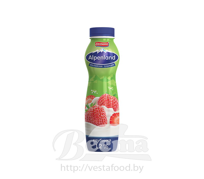 Напиток йогуртный пастериз."Alpenland" с клубникой, мдж. 1,2%, 290г, 1/6