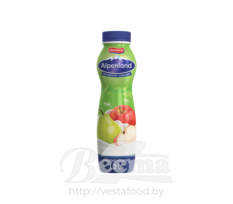 Напиток йогуртный пастериз."Alpenland" с яблоком и грушей, мдж. 1,2%, 290г, 1/6
