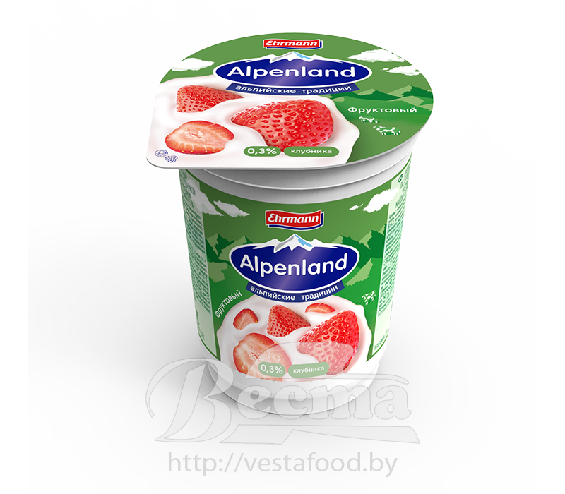 "Alpenland.Фруктовый" с клубникой, продукт йогуртный пастериз.,мдж 0,3%, 320г, стакан, 1/12