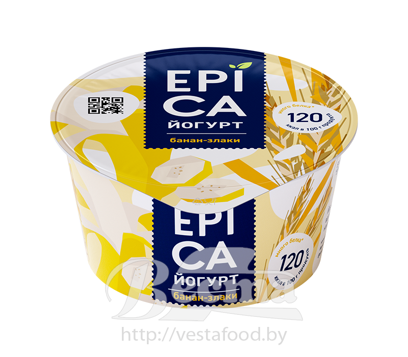 Йогурт "ЕPICA" с бананом и злаками, м.ж.д 4,9%, 130г, 1/12