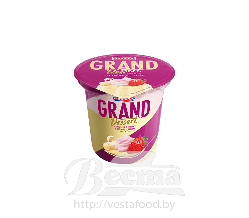 "Пудинг молочный ультрапастеризованный с белым шоколадом и сливочно-клубничным муссом ""Гранд Десерт. Белый шоколад с клубничным муссом"", м.д.ж.6,0%, 200г "