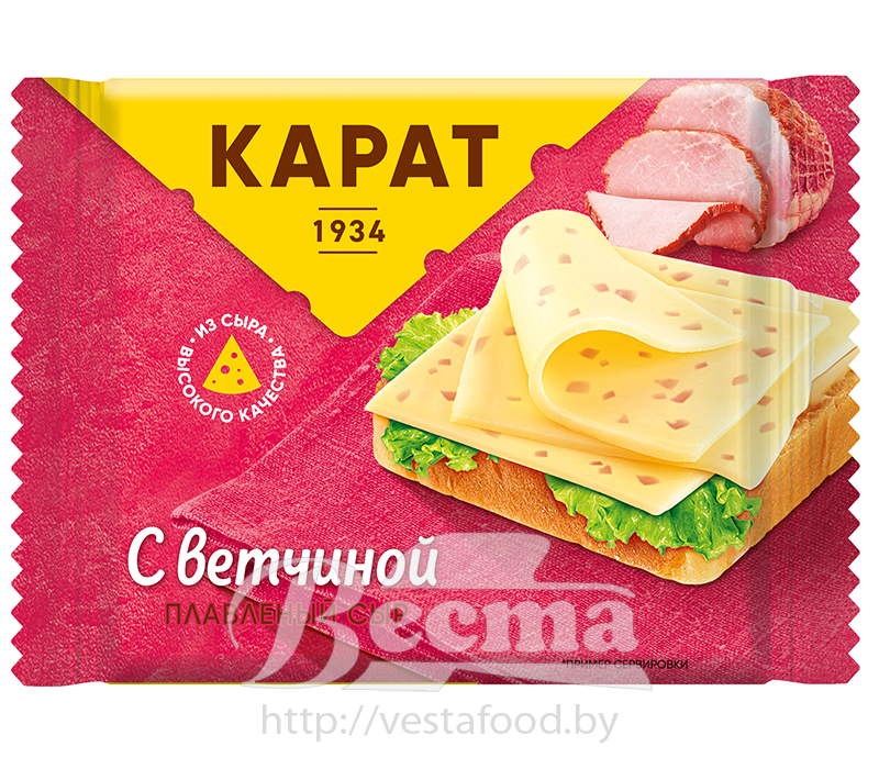 Сыр плавленый ломтиками сливочный «КАРАТ» с ветчиной м.д.ж. 25%, 130г
