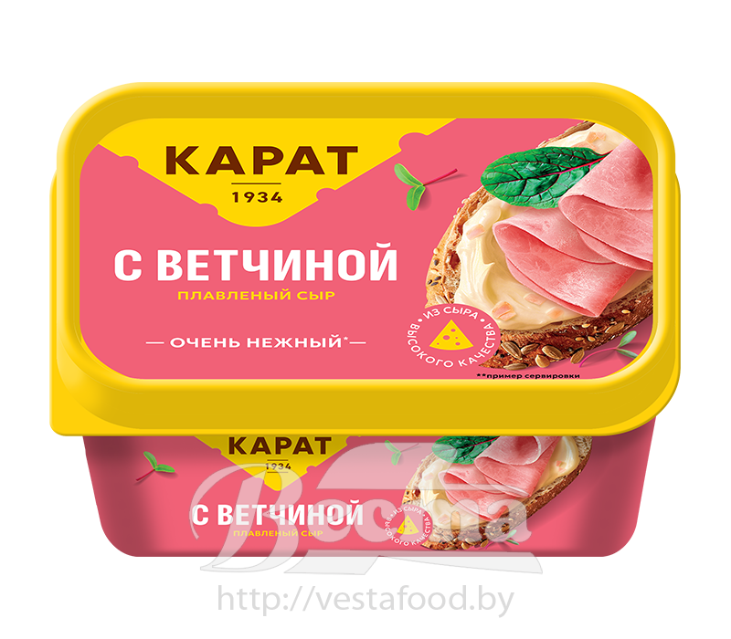 Сыр плавленый сливочный "Карат" с ветчиной, мдж 45%, п/кор, 400г