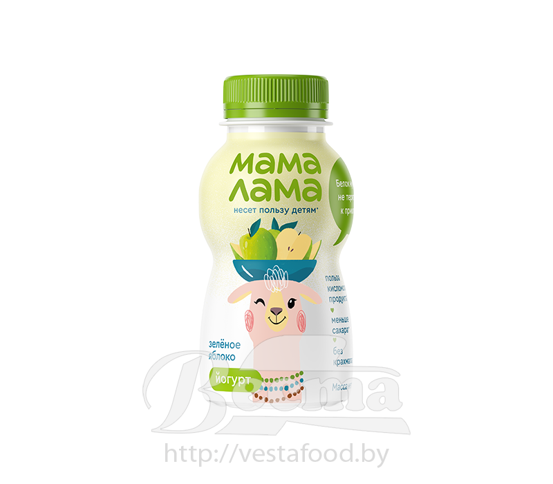 Продукт детского питания: йогурт питьевой "Лама Мама" с зелёным яблоком, для детей старше 3-х лет, м.д.ж.2,5%, 200г