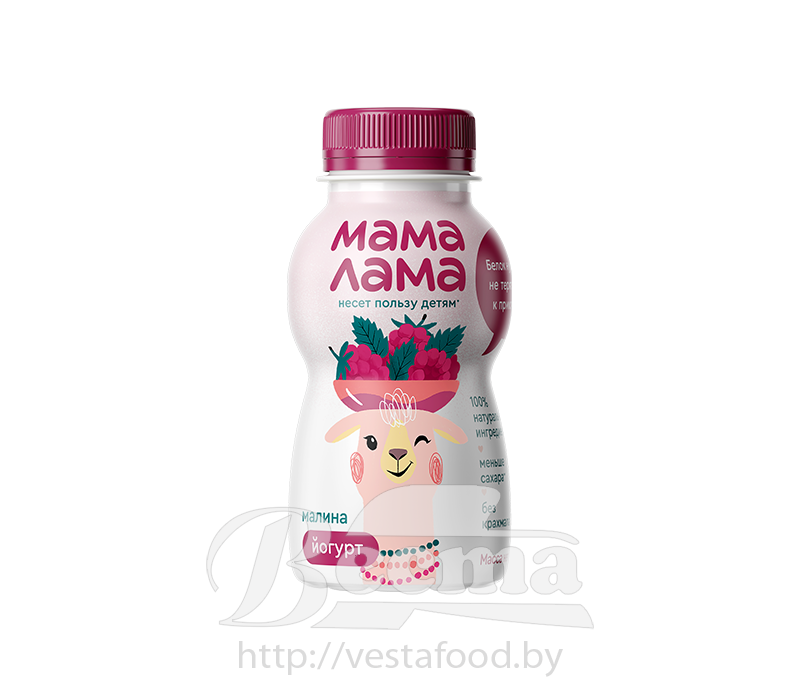 Продукт детского питания: йогурт питьевой "Лама Мама" с малиной, для детей старше 3-х лет, м.д.ж.2,5%, 200г