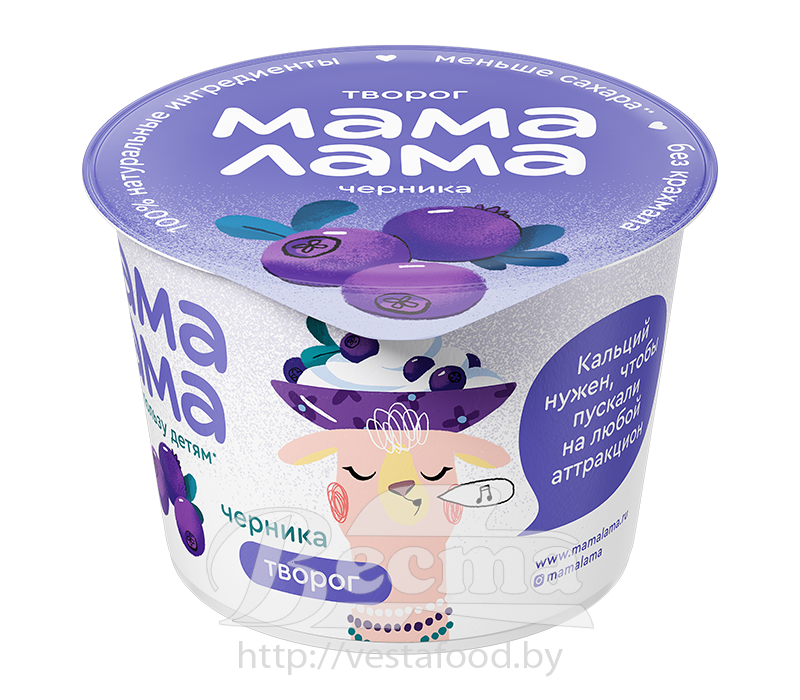 Творог "Мама Лама" с черникой, мдж 3,8%, 100г, 1/6